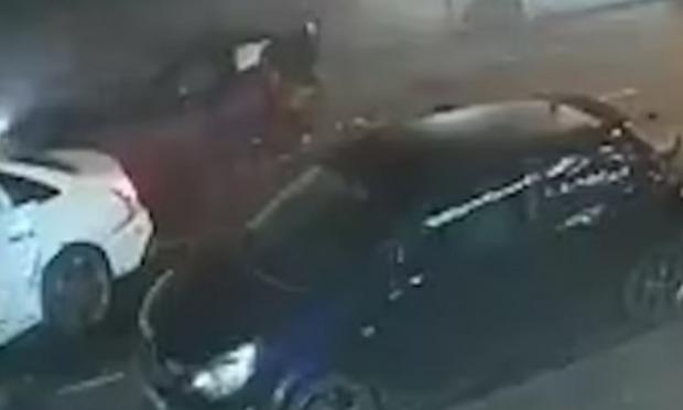 Τα πλάνα δείχνουν ένα λευκό αυτοκίνητο να τρέχει με μεγάλη ταχύτητα στην οδό Soho Road, στο Μπέρμιγχαμ, το βράδυ της Κυριακής, πριν συγκρουστεί με το πίσω μέρος ενός αργοκίνητου οχήματος και προκαλέσει καραμπόλα.
