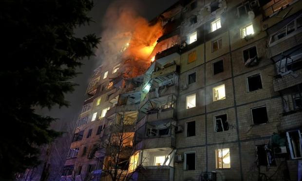 «Δύο κτίρια χτυπήθηκαν, ένα πενταώροφο και ένα εννιαώροφο», διευκρίνισε ο περιφερειάρχης Σερχίι Λισάκ. Μεταξύ των τραυματιών περιλαμβάνονται τουλάχιστον επτά παιδιά.