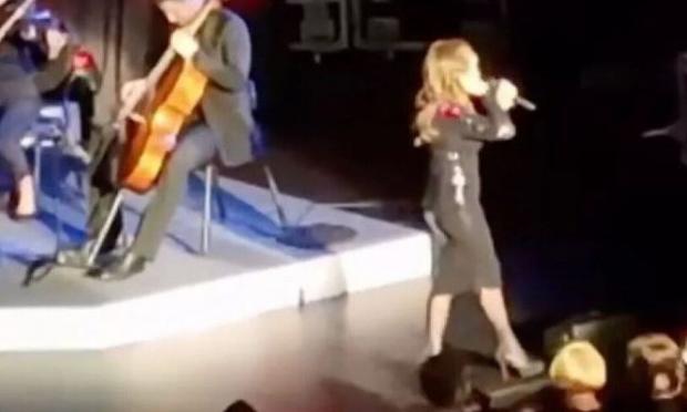 Ευτυχώς, η Βίκυ Λέανδρος δεν τραυματίστηκε και επέστρεψε στη σκηνή συνεχίζοντας να τραγουδάει. Η στιγμή του ατυχήματός της καταγράφηκε, ωστόσο, σε βίντεο από το κινητό ενός θεατή.