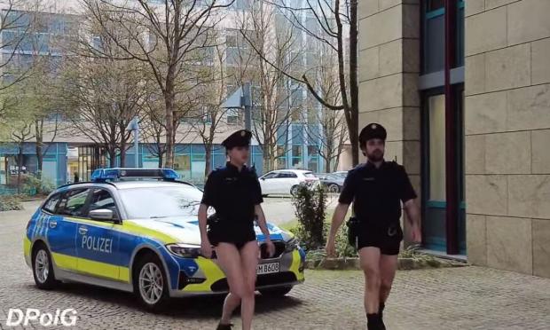 Σε ένα βίντεο που ανέβασε στο YouTube και το Instagram το βαυαρικό παράρτημα της Γερμανικής Ένωσης Αστυνομικών (DPolG), δύο αστυνομικοί - ένας άνδρας και μια γυναίκα - κάθονται σε ένα περιπολικό και ρωτούν ο ένας τον άλλον: «Εσύ πόσο καιρό περιμένεις;». Αφού απαντούν «τέσσερις» και «έξι μήνες» αντίστοιχα, βγαίνουν από την BMW τους, για να αποκαλύψουν ότι δεν φορούν παντελόνι.