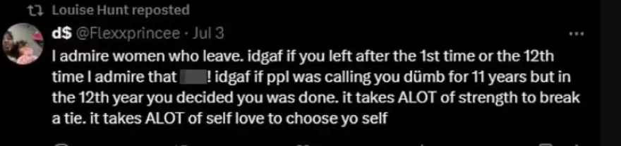 Λίγες ημέρες πριν το φονικό η Λουίζ, η οποία φέρεται να είχε έναν περιπετειώδη χωρισμό με τον 26χρονο δράστη, είχε αναρτήσει μήνυμα στο Χ επαινώντας «τις γυναίκες που φεύγουν» από μια σχέση για τη «δύναμή» τους.