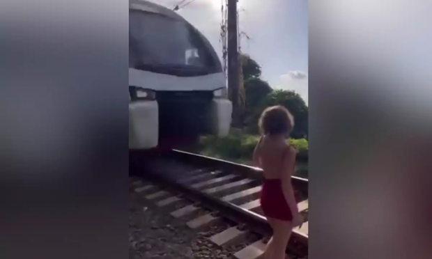 Στο βίντεο που ανέβηκε στο X πρώην Twitter φαίνεται η νεαρή, που φοράει ένα κόκκινο φόρεμα, να προσπαθεί να βγάλει φωτογραφία λίγο πριν το τρένο περάσει από τις ράγες σε πόλη της Γεωργίας.