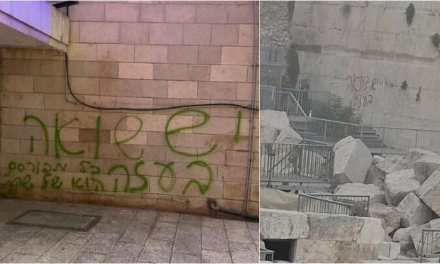 Με αντισημιτικά γκράφιτι, άγνωστοι βανδάλισαν το Τείχος των Δακρύων (Δυτικό Τείχος), προκαλώντας «θύελλα» αντιδράσεων.
