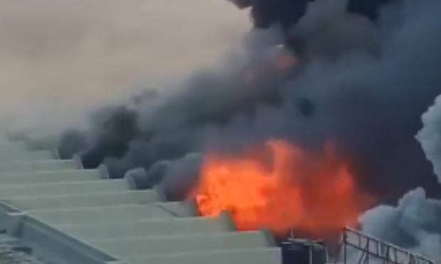 Βίντεο από το σημείο δείχνουν πυκνό μαύρο καπνό να υψώνεται από τον τερματικό σταθμό εμπορευματικών μεταφορών, καλύπτοντας μεγάλο μέρος του ουρανού και δημιουργώντας αποπνικτική ατμόσφαιρα.