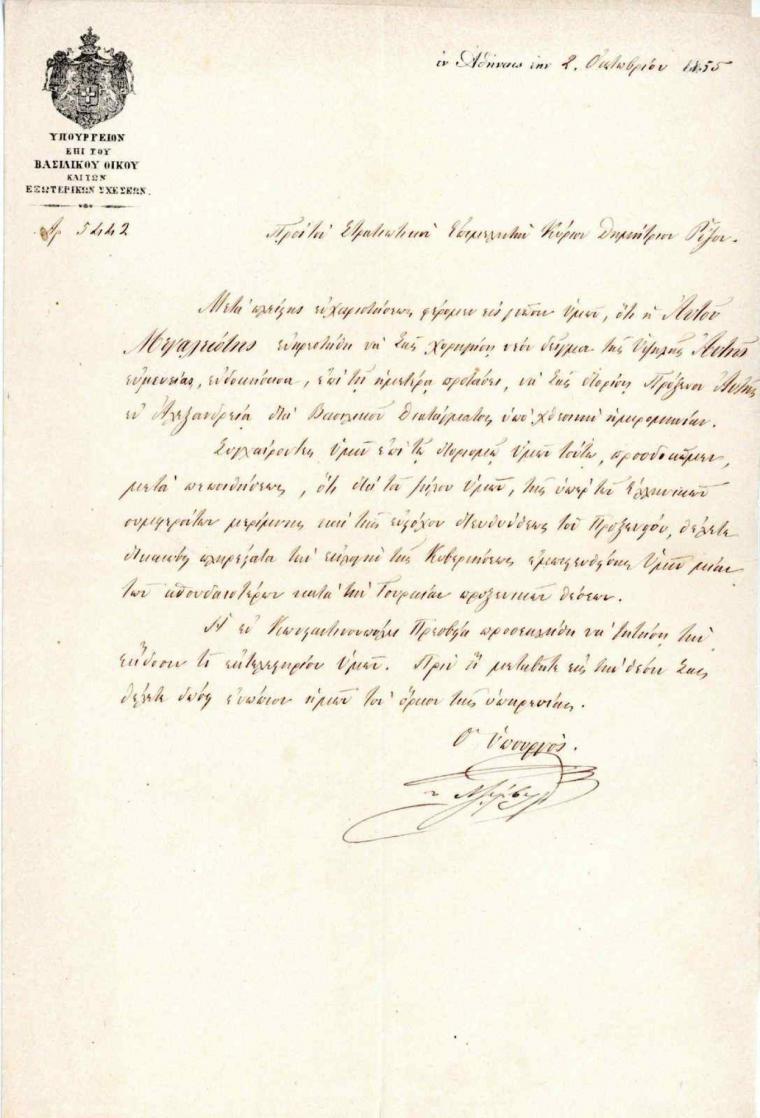 Σήμερα, για πρώτη φορά, το ιστορικό αυτό έγγραφο αναδύεται στο φως, ανοίγοντας ένα νέο κεφάλαιο στην κατανόηση των ελληνοοθωμανικών σχέσεων και της διπλωματικής ιστορίας του 19ου αιώνα. «Είναι ένα επίσημο αυτοκρατορικό φιρμάνι, υπογεγραμμένο το 1855 από τον σουλτάνο Αμπντούλ Μετζίτ Α’, που ορίζει τον Δημήτρη Ρίζο Νερουλό ως πρόξενο της Ελλάδας στην Αλεξάνδρεια της Αιγύπτου, αντικαθιστώντας τον Μιχαήλ Τοσίτσα», εξηγεί στο Αθηναϊκό/Μακεδονικό Πρακτορείο Ειδήσεων ο άνθρωπος που ανέλαβε τη μετάφρασή του από τα οθωμανικά, ο ιστορικός ερευνητής Γιώργος Μπατζακίδης.