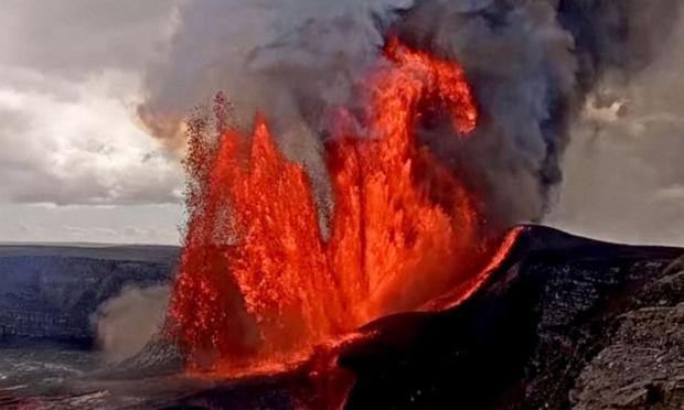 Πάνω από 330 μέτρα από το κρατήρα του ηφαιστείου Κιλαουέα στη Χαβάη τινάζεται η λάβα, σχηματίζοντας εντυπωσιακούς πίδακες.