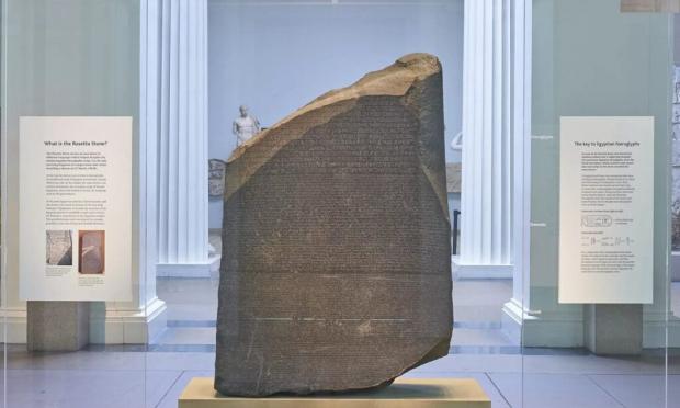 Για δεκαετίες οι Αιγύπτιοι ζητούσαν τον δανεισμό του μνημειώδους ευρήματος, μιας πέτρινης στήλης ύψους 114 εκ. και πλάτους 72 εκ., που ανακαλύφθηκε το 1799 στη Ροζέτα από στρατιώτες του Ναπολέοντα Βοναπάρτη. Η στήλη κατέληξε στα χέρια των Βρετανών ως λάφυρο πολέμου και εντάχθηκε στις συλλογές του Βρετανικού Μουσείου.