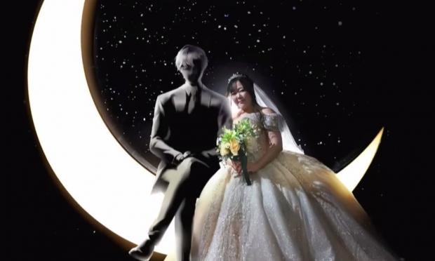 Κατά τη διάρκεια της τελετής, η Κάνο στεκόταν μόνη, φορώντας ειδικά γυαλιά εικονικής πραγματικότητας (VR), ώστε να μπορεί να «βλέπει» τον σύντροφό της, ενώ φωτογραφίες της τροποποιήθηκαν ψηφιακά ώστε να εμφανίζεται ο Λουν στο πλευρό της.