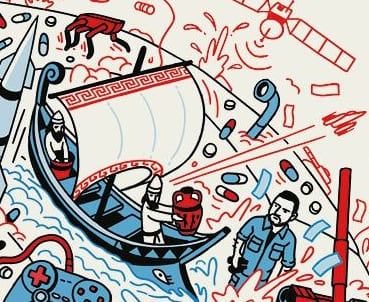 Αυτό, στην πραγματικότητα, υπονοείται και από την Ελληνική τριήρη, από την οποία παραδίδεται στον Ζελένσκι κάποιο είδος αμφορέα. Υποθέτουμε ότι ο αμφορέας περιέχει το λεγόμενο «ελληνικό υγρό πυρ» – ένα σύστημα φλογοβόλων όπλων από την αρχαία εποχή π.Χ.