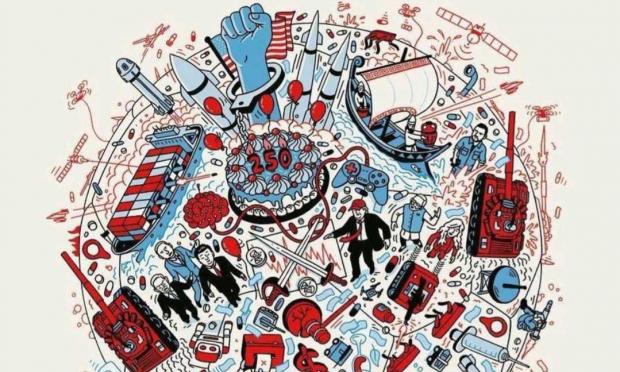 1) Η τούρτα με τον αριθμό “250” ο οποίος αντιπροσωπεύει την αναπόφευκτη 250ή επέτειο της της Διακήρυξης της Ανεξαρτησίας των Ηνωμένων Πολιτειών το 2026. Βρίσκεται στο κέντρο της εικόνας και αυτό δείχνει ότι θα βρίσκεται στο επίκεντρο της προσοχής ολόκληρου του κόσμου.