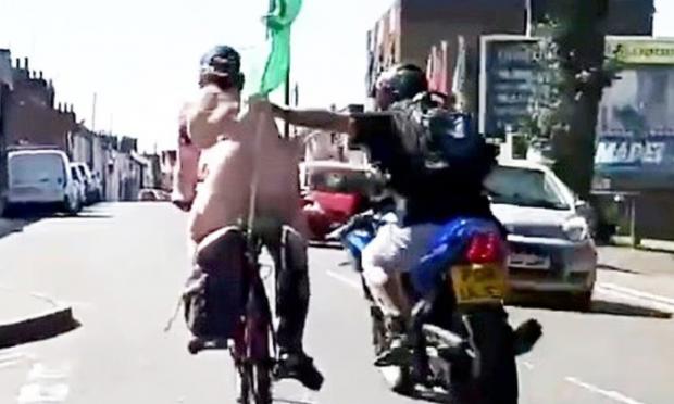 Τον γύρο του διαδικτύου κάνει βίντεο όπου φαίνεται η στιγμή που ένας γυμνός ποδηλάτης δέχεται μπουνιά από διερχόμενο μοτοσικλετιστή και σωριάζεται στο έδαφος μαζί με το ποδήλατό του.