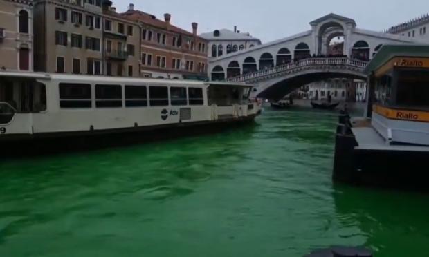 Συγκεκριμένα, έβαψαν πράσινα τα νερά σε ποτάμια, κανάλια και σιντριβάνια σε δέκα ιταλικές πόλεις, μεταξύ των οποιίων - όπως είναι φυσικό - και στη Βενετία.