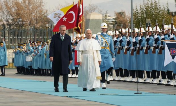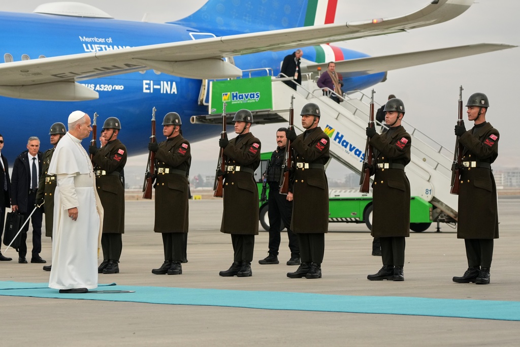 Όπως είναι φυσικό, ο πάπας Λέων έγινε δεκτός με τιμές στο αεροδρόμιο της Άγκυρας.