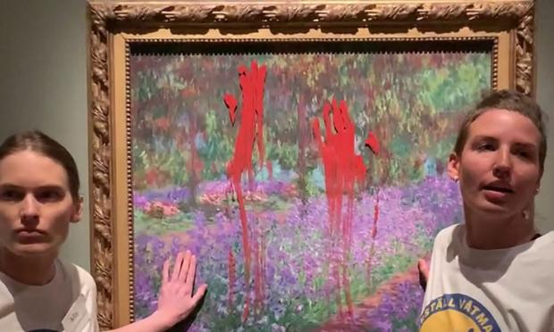 Τη 14η Ιουνίου του 2023, δύο νεαρές γυναίκες βούτηξαν τα χέρια τους μέσα σε κόκκινη μπογιά προτού την απλώσουν στον πίνακα «Ο κήπος του καλλιτέχνη στο Ζιβερνί» (Le Jardin de l'artiste à Giverny- 1900), το οποίο είχε δανείσει εκείνη την εποχή το μουσείο Ορσέ στο εθνικό μουσείο της Σουηδίας (Nationalmuseum) στο πλαίσιο μιας έκθεσης που ήταν αφιερωμένη στους κήπους και τη φύση.