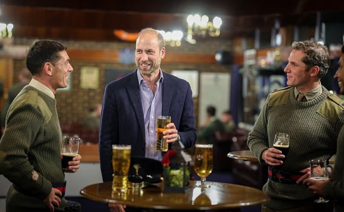 Ο Πρίγκιπας Ουίλιαμ επισκέφτηκε το 1ο Τάγμα της Ουαλικής Φρουράς, στο στρατόπεδό του, στο Windsor και δεν έχασε την ευκαιρία για μια μπύρα, αφού όμως πρώτα μοιράστηκε μαζί τους ένας εορταστικό γεύμα.