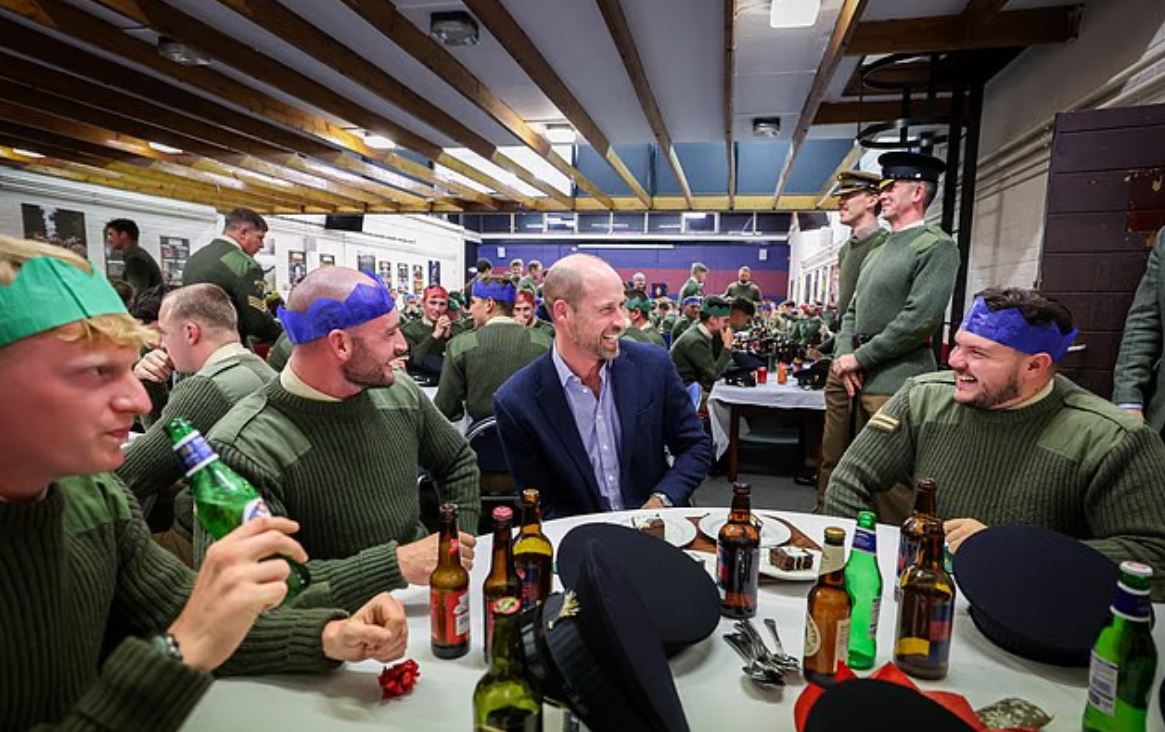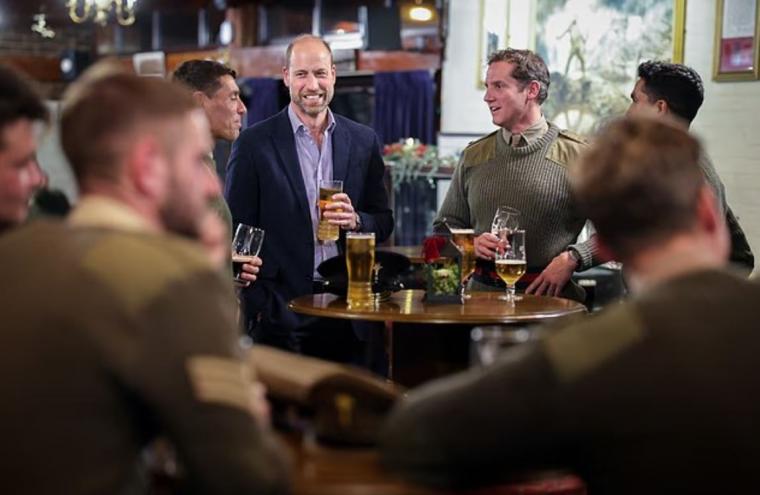 Μετά το γεύμα, ο Ουίλιαμ – ο οποίος έχει το χαϊδευτικό παρατσούκλι «One Pint Willy» (Ο Ουίλι της Μπύρας) από τον σύζυγο της ξαδέλφης του Ζάρα, Μάικ Τίνταλ, επειδή «δεν είναι και ο καλύτερος πότης» – έμεινε πίσω για να απολαύσει μια μπύρα με τους στρατιώτες των οποίων είναι διοικητής.