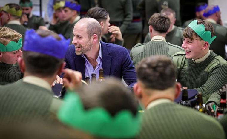 Ο μελλοντικός βασιλιάς, 43 ετών, απόλαυσε ένα πλήρες εορταστικό γεύμα, κατά τη διάρκεια της επίσκεψής του στους Φρουρούς της Ουαλίας, στο πλαίσιο της θέσης του ως συνταγματάρχης του συντάγματος – ένας τελετουργικός ρόλος που κατέχει από τον Δεκέμβριο του 2022. Ήταν μια θέση που κατείχε ο βασιλιάς Κάρολος από το 1975, με τον γιο και διάδοχό του να την αναλαμβάνει πριν από τρία χρόνια.