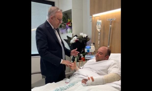 Ο πρωθυπουργός της Αυστραλίας Άντονι Αλμπανέζι επισκέφθηκε σήμερα στο νοσοκομείο τον «ήρωα» της παραλίας Μπόνταϊ, τον Άχμεντ αλ Άχμεντ, ο οποίος επενέβη για να σταματήσει έναν από τους δράστες της πιο φονικής επίθεσης με πυροβόλα όπλα που έχει γνωρίσει η χώρα εδώ και δεκαετίες.