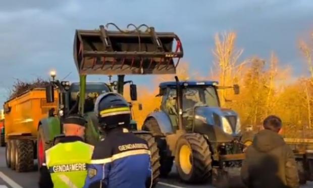 Στην περιφέρεια του Παρισιού, αγρότες απέκλεισαν επίσης σήμερα μια εθνική οδό στο Μερέ.