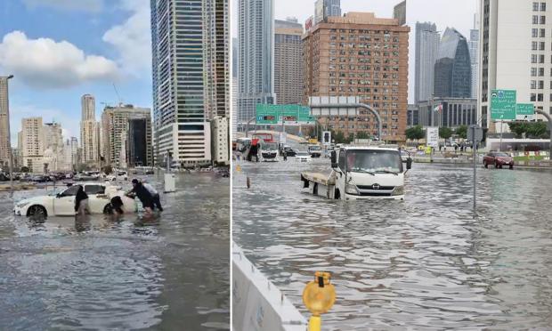 Στο εμιράτο της Σάρτζα πλημμύρισε μία από τις βασικές οδικές αρτηρίες και οι περαστικοί κυκλοφορούσαν χωρίς παπούτσια