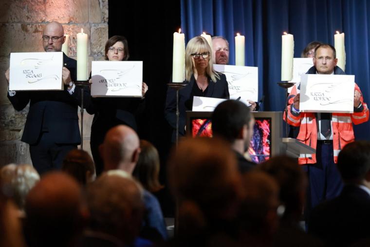 «Στεκόμαστε στο πλευρό σας, σήμερα και στο μέλλον. Και αν αυτή η υποστήριξη είναι ελλιπής, τότε καλούμαστε σήμερα να τη διορθώσουμε και να τη βελτιώσουμε. Στο κοινό πένθος μπορεί κανείς να βρει παρηγοριά και δύναμη, αλλά μπροστά σε φριχτά εγκλήματα όπως αυτό, είναι επίσης επιτρεπτό να έχει κανείς θυμό και οργή», δήλωσε ο καγκελάριος και τόνισε ότι η Γερμανία είναι μια χώρα «που δεν εκτιμά τίποτα περισσότερο από τον άνθρωπο, το κάθε άτομο, την ανθρώπινη ζωή». Πρόκειται για την προσφορά άνευ όρων συμπόνιας του ενός προς τον άλλον, όπου συμβαίνει αδικία, για το να στεκόμαστε μαζί όπου ξεσπά βία και για τη συνεχή υποστήριξη όσων βιώνουν βία.