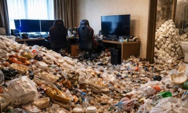 Στις εικόνες που κυκλοφορούν στα μέσα κοινωνικής δικτύωσης, και αναδημοσιεύτηκαν από τη The Sun, το δωμάτιο μοιάζει αγνώριστο: περιτυλίγματα φαγητού, άδεια μπουκάλια και πακέτα delivery σχηματίζουν σωρούς απορριμμάτων που καταλαμβάνουν σχεδόν κάθε διαθέσιμο χώρο. Σε ορισμένα σημεία, τα σκουπίδια φτάνουν σχεδόν το ένα μέτρο σε ύψος, καλύπτοντας τραπέζια, καρέκλες και τον εξοπλισμό gaming, όπως αναφέρει η gazzetta.gr