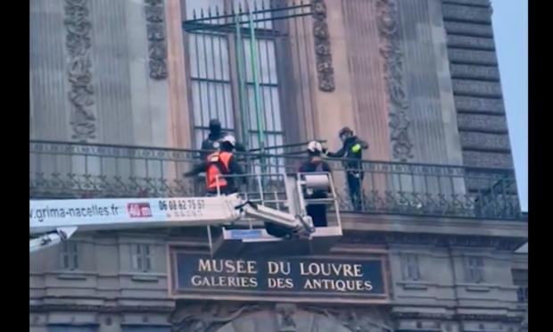 Ένας ανυψωτικός γερανός φορτίου υψώθηκε το πρωί της Τρίτης προς το Μουσείο του Λούβρου για την αποκατάσταση ενός από τα σοβαρότερα κενά ασφαλείας στην ιστορία του μουσείου. Αυτή τη φορά, επρόκειτο για συνεργεία που τοποθετούσαν μεταλλικά κάγκελα στο παράθυρο από το οποίο εισέβαλαν οι δράστες.