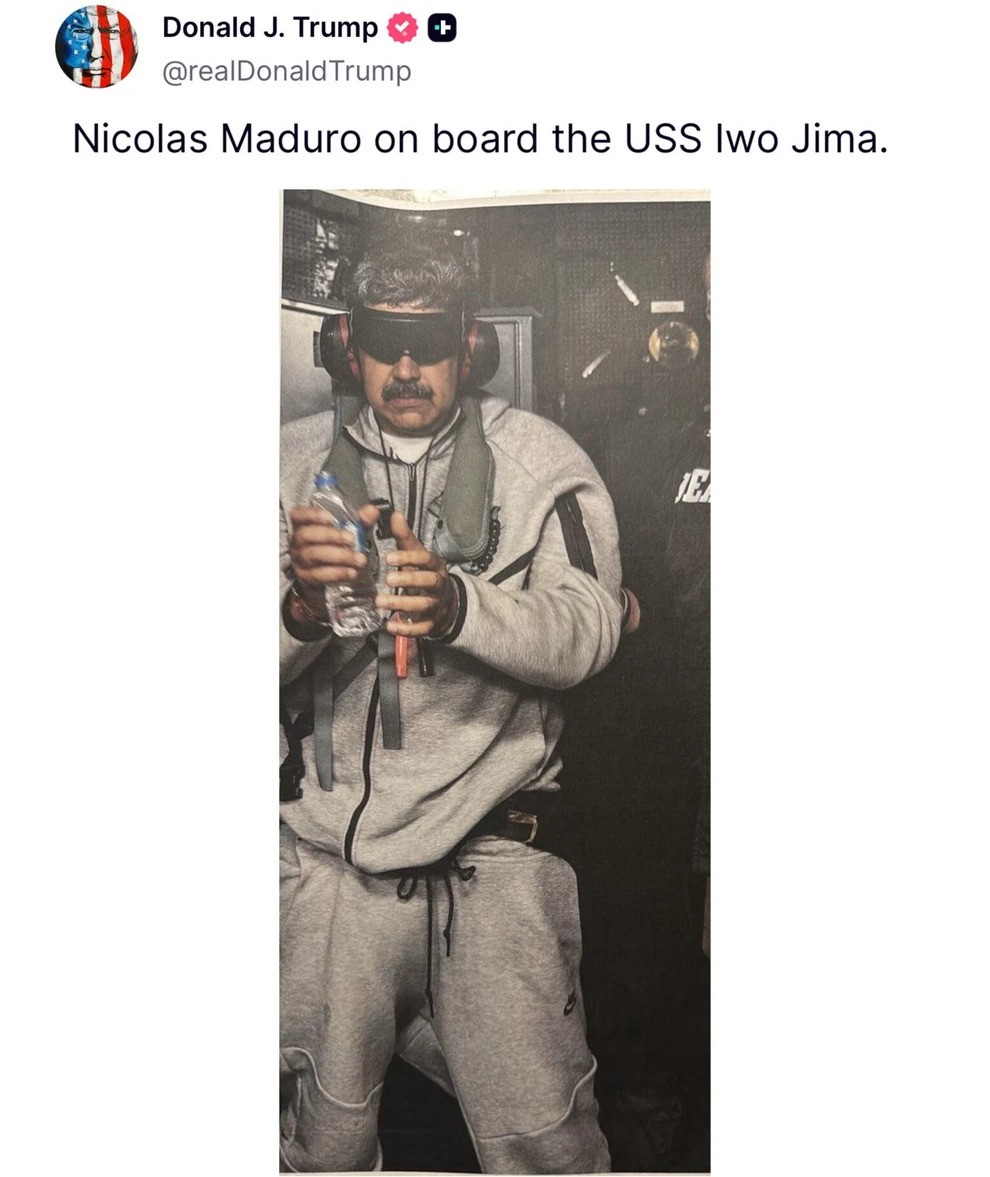 Ο Νικολάς Μαδούρο και η Σίλια Φλόρες επιβιβάστηκαν στο USS Iwo Jima λίγο μετά τις 03:39 ET. Το βράδυ της ίδιας ημέρας, ο Μαδούρο μεταφέρθηκε στη Νέα Υόρκη και οδηγήθηκε στο Metropolitan Detention Center (MDC) του Μπρούκλιν.