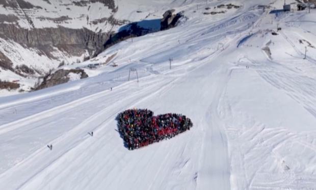 Περίπου 1.000 σκιέρ χάραξαν την Κυριακή μια τεράστια καρδιά στο χιόνι, σε πίστα του παγκοσμίου τουρνουά στο Κραν Μοντανά, αποτίοντας φόρο τιμής στα θύματα της φονικής πυρκαγιάς που ξέσπασε την περασμένη εβδομάδα στο ελβετικό θέρετρο.