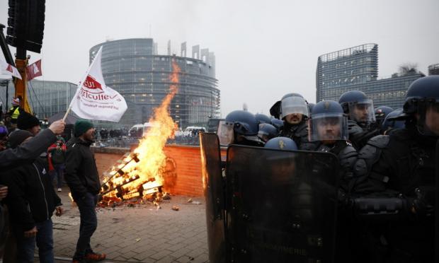 Γάλλοι, Ιταλοί, Βέλγοι, ακόμη και Πολωνοί αγρότες, συγκεντρώθηκαν γύρω στο μεσημέρι έξω από το ευρωκοινοβούλιο, κάποιοι με τα τρακτέρ τους. Σύμφωνα με εκτιμήσεις της αστυνομίας ήταν περίπου 5.500 άνθρωποι.