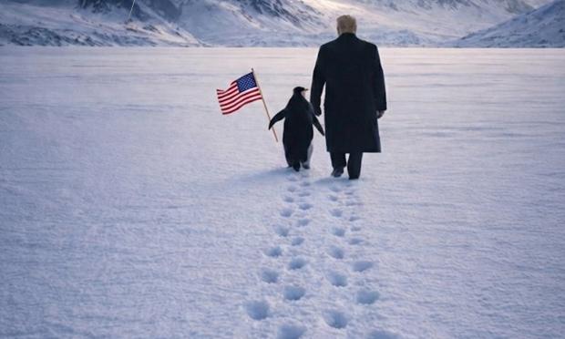 Στον απόηχο της συζήτησης για Γροιλανδία, ο Λευκός Οίκος  εκμεταλλεύτηκε το viral βίντεο και έδωσε στη δημοσιότητα μια εικόνα τεχνητής νοημοσύνης, στην οποία ο Τραμπ εμφανίζεται να βαδίζει προς μια χιονισμένη οροσειρά, πλάι σε έναν πιγκουίνο οδηγώντας τον ουσιαστικά στο «πεπρωμένο» του με ασφάλεια. Στην εικόνα, ο πιγκουίνος απεικονίζεται να κρατά την αμερικανική σημαία, ενώ στο φόντο, πάνω στα βουνά, διακρίνεται η σημαία της Γροιλανδίας. Όλα συνδέονται με το σύνθημα «Embrace The Penguin».