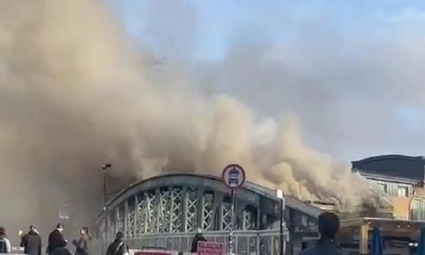 Βίντεο καταγράφουν πυκνούς καπνούς να αναδύονται από το κτίριο, ενώ γίνεται χρήση ειδικής κλίμακας ύψους 32 μέτρων για τη ρίψη νερού στην εστία της φωτιάς από ψηλά. Για λόγους ασφαλείας, έκλεισε και μία κοντινή πεζογέφυρα.