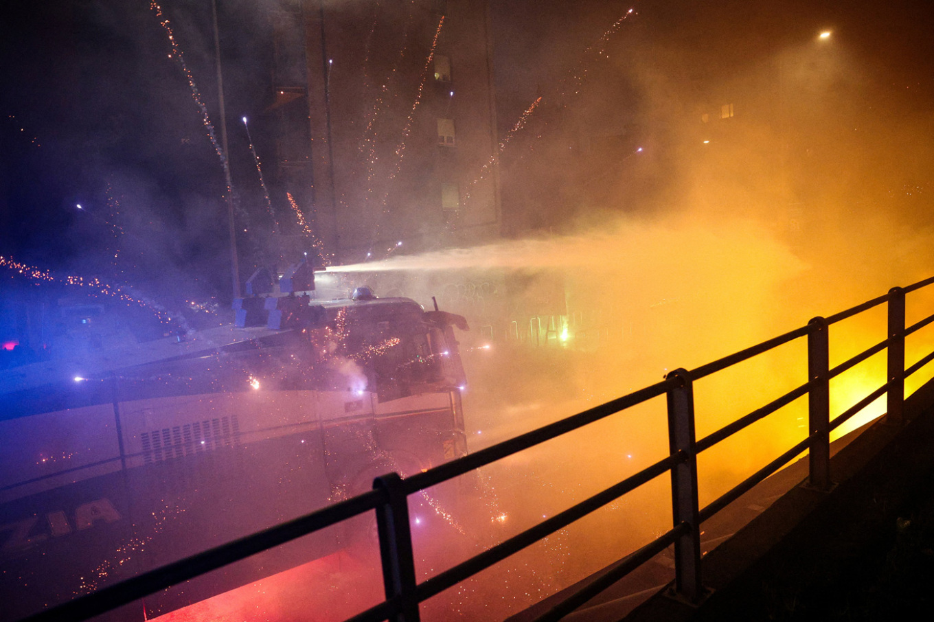 Σύμφωνα με τις μέχρι τώρα πληροφορίες, περίπου 5.000 άτομα διαδήλωσαν κατά των Χειμερινών Ολυμπιακών Αγώνων Μιλάνο - Κορτίνα.