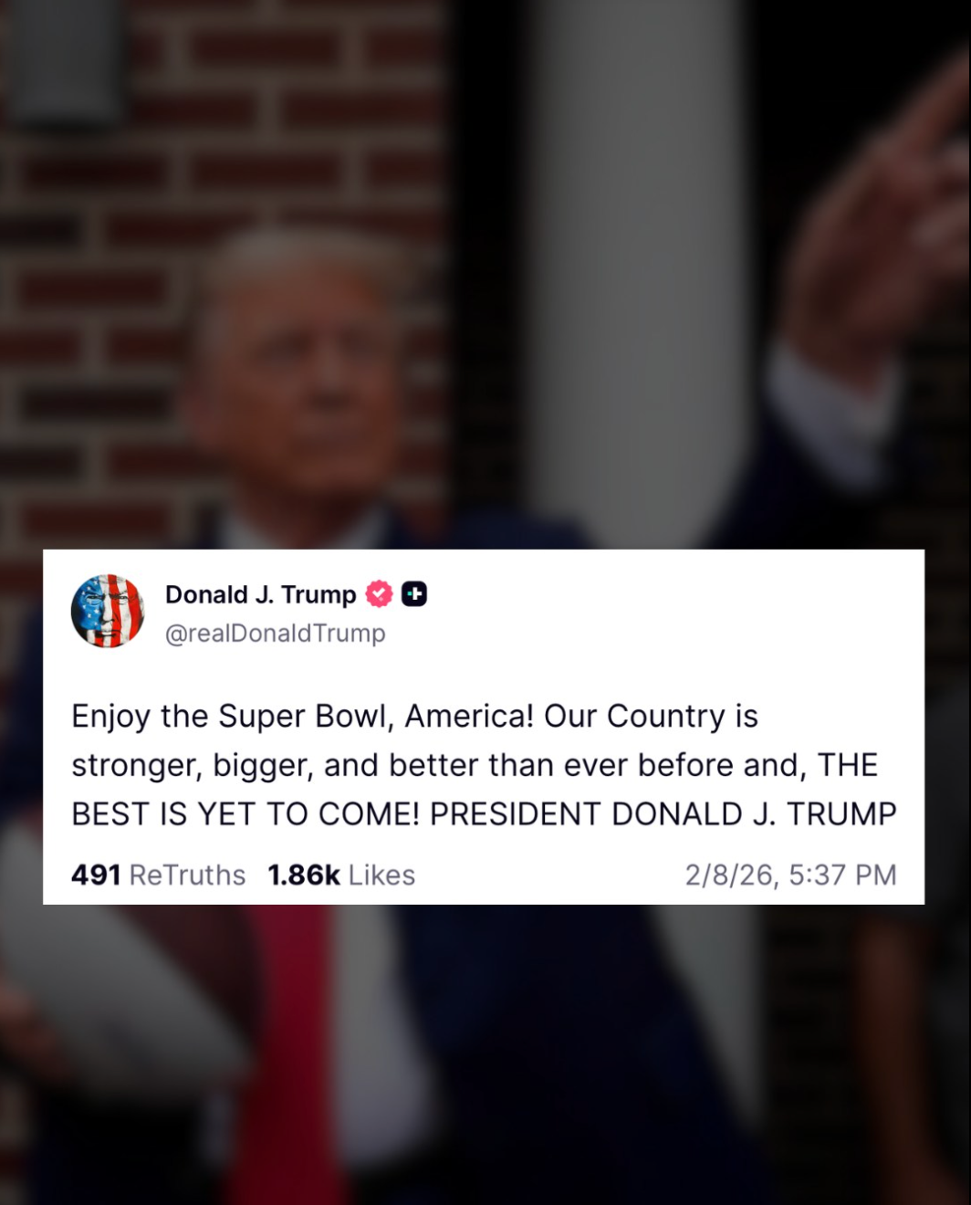Ωστόσο, το θέαμα δεν ικανοποίησε τον Πρόεδρο των Ηνωμένων Πολιτειών. Ο Ντόναλντ Τραμπ, χρησιμοποιώντας την πλατφόρμα του Truth Social, εξαπέλυσε σφοδρή επίθεση κατά του καλλιτέχνη και των διοργανωτών του NFL.