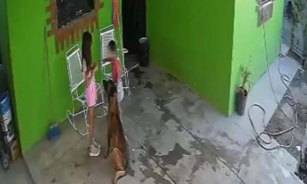 Όπως φαίνεται στο βίντεο από κάμερα ασφαλείας, η 7χρονη έπαιζε με τον σκύλο, όταν ξαφνικά το τετράποδο την άρπαξε από το κεφάλι και την κουνούσε δεξιά-αριστερά για αρκετά δευτερόλεπτα.