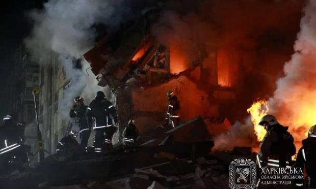 «Λόγω της εχθρικής επίθεσης, τμήμα μιας πενταόροφης πολυκατοικίας στη συνοικία Κίιβσκι του Χαρκόβου καταστράφηκε ολοσχερώς. Παρακείμενη κατοικία υπέστη επίσης ζημιές», ανακοίνωσε μέσω Telegram ο Όλεχ Σινιεχούμποφ, ο επικεφαλής της περιφερειακής στρατιωτικής διοίκησης.