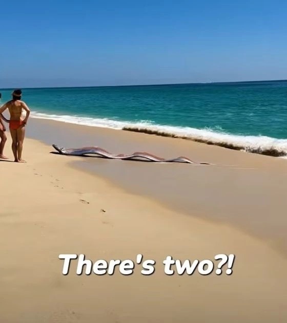 Το περιστατικό σημειώθηκε τον περασμένο μήνα στο Cabo San Lucas, όταν η Μόνικα Πίτενγκερ και η αδελφή της Κέιτι περνούσαν χαλαρές στιγμές στην παραλία. Ξαφνικά, κάτι παράξενο άρχισε να γυαλίζει μέσα στα ρηχά νερά. Όταν πλησίασαν για να δουν τι συμβαίνει, συνειδητοποίησαν ότι μπροστά τους βρισκόταν ένα τεράστιο πλάσμα με μακρύ, ασημένιο σώμα που έμοιαζε να κυματίζει σαν κορδέλα.