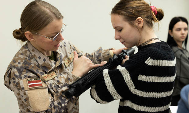 Στην Τεχνική Σχολή Τουρισμού της Ρίγας, τα αεροβόλα Crosman SBR, που προσομοιάζουν στα αμερικανικά στρατιωτικά M4, αποτελούν πλέον μέρος του σχολικού εξοπλισμού. Οι μαθητές, ανεξαρτήτως του επαγγελματικού τους προσανατολισμού, καλούνται να εξοικειωθούν με το βάρος και τη χρήση τους. Σκοπός της λετονικής κυβέρνησης δεν είναι η δημιουργία μιας γενιάς «πολεμοχαρών», αλλά η σφυρηλάτηση υπεύθυνων πολιτών που δεν θα βρεθούν απροετοίμαστοι αν η ιστορία χτυπήσει ξανά την πόρτα τους με τον πιο βίαιο τρόπο.
