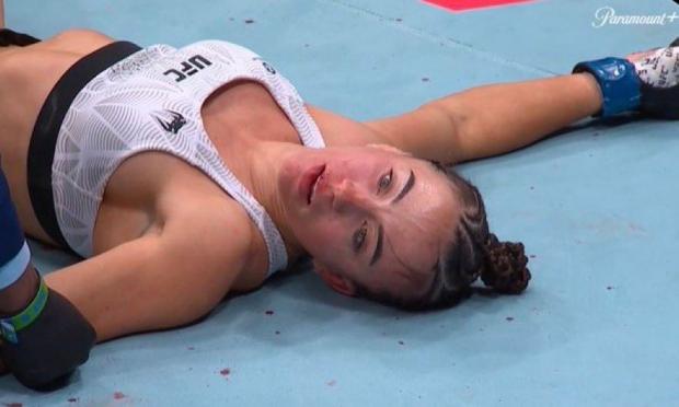 Η αθλήτρια της κατηγορίας flyweight φαινόταν με τα χέρια της και τα μάτια της ανοιχτά, καθώς παρέμενε αναίσθητη, ενώ οι γιατροί έσπευδαν να τη βοηθήσουν.