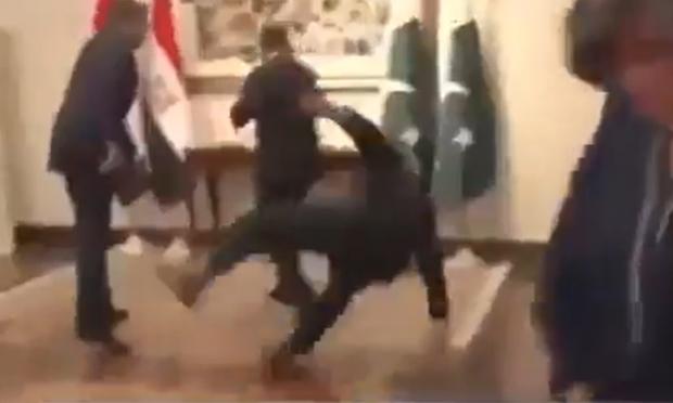 Το περιστατικό σημειώθηκε στο υπουργείο Εξωτερικών στο Ισλαμαμπάντ, την ώρα που ο Νταρ υποδεχόταν τον υπουργό Εξωτερικών της Αιγύπτου, Μπαντρ Αμπντελατί, στο πλαίσιο επίσημης εκδήλωσης.