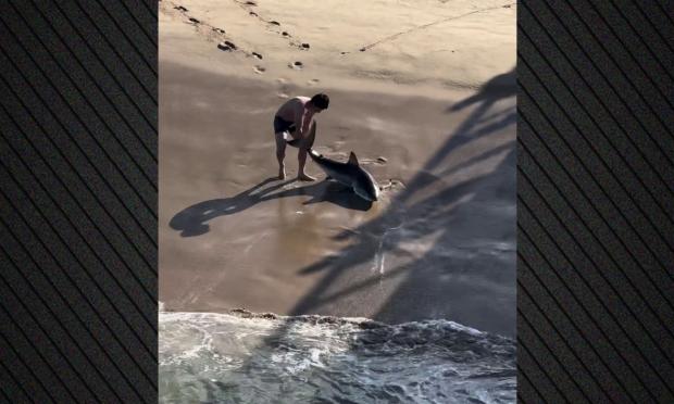 Καλιφόρνια: Η απίστευτη στιγμή που 20χρονος σώζει λευκό καρχαρία που είχε μπλεχτεί στην πετονιά (βίντεο)