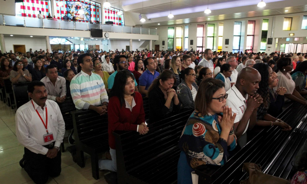 Ελλείψει κάτι καλύτερου, οι πιστοί προσεύχονται στο πεζοδρόμιο. Κόσμος έρχεται και φεύγει συνεχώς και πάντα υπάρχουν τουλάχιστον τριάντα άνθρωποι μπροστά στα ψηλά τείχη του περίβολου.