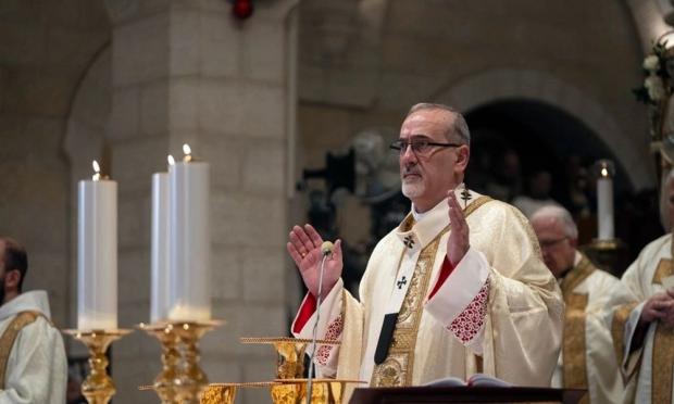 Παρουσία λίγων πιστών ο Λατίνος Πατριάρχης Ιεροσολύμων Καρδινάλιος Πιερμπατίστα Πιτσαμπάλα τέλεσε την πασχαλινή λειτουργία στην Εκκλησία του Παναγίου Τάφου την Κυριακή (5/4).