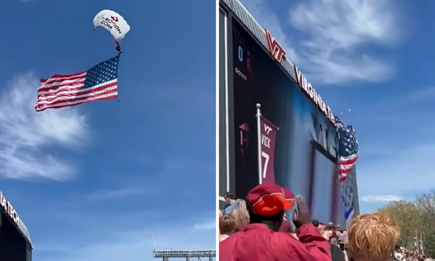 Ένα απρόσμενο και άκρως επικίνδυνο περιστατικό σημάδεψε τον εαρινό αγώνα ποδοσφαίρου του πανεπιστημίου Virginia Tech στις ΗΠΑ, όταν ένας αλεξιπτωτιστής, που συμμετείχε στο εορταστικό πρόγραμμα, έχασε τον έλεγχο και προσέκρουσε με δύναμη στον γιγαντιαίο φωτεινό πίνακα του σταδίου Lane.