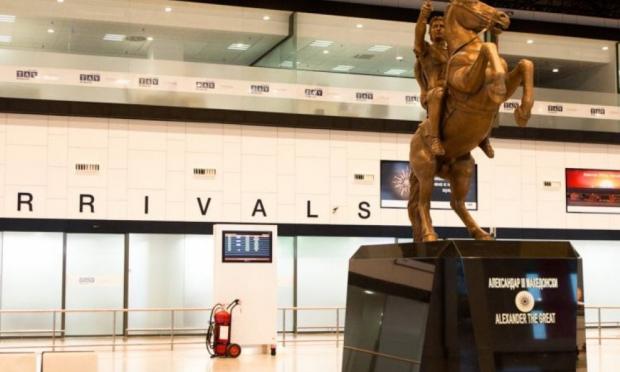 Παράλληλα στις αίθουσες αφίξεων και αναχωρήσεων του αεροδρομίου, δεσπόζουν ακόμη προκλητικά η προτομή και το άγαλμα του Μεγάλου Αλεξάνδρου, που τοποθετήθηκαν τα χρόνια παντοδυναμίας του τέως πρωθυπουργού Νίκολα Γκρούεφσκι.