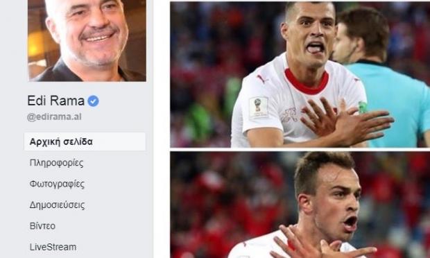 Ο Έντι Ράμα έδωσε συνέχεια στο θέμα αυτό ανεβάζοντας στο προφίλ του στο facebook τις φωτογραφίες των συγκεκριμένων ποδοσφαιριστών που σχημάτιζαν το αλβανικό αετό, που για τους ακροδεξιούς συμπατριώτες του συμβολίζει την ιδέα της ενωμένης και «Μεγάλης Αλβανίας». Τα σχόλια των Αλβανών στην συγκεκριμένη ανάρτηση πήραν φωτιά και ήταν επαινετικά προς το πρόσωπο του Αλβανού πρωθυπουργού.