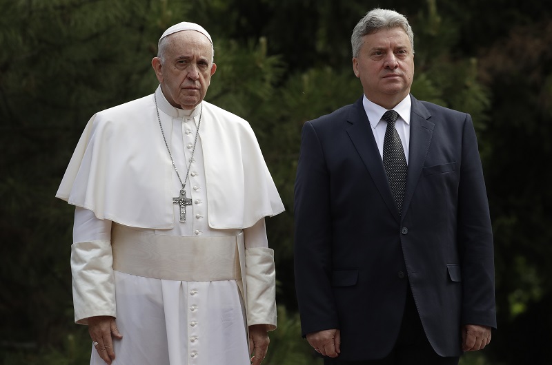 Νωρίτερα σήμερα, ο Πάπας Φραγκίσκος συναντήθηκε στο προεδρικό μέγαρο της ΠΓΔΜ με τον Πρόεδρο της χώρας Γκιόργκι Ιβάνοφ και τον πρωθυπουργό Ζόραν Ζάεφ.