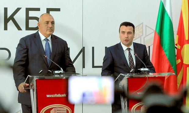 Ο πρωθυπουργός της Δημοκρατίας της Βόρειας Μακεδονίας, Ζόραν Ζάεφ, μαζί με τον πρωθυπουργό της Βουλγαρίας, Μπόικο Μπορίσοφ, μετά την κοινή συνέντευξη Τύπου, συνοδευόμενοι από τους υπουργούς Εξωτερικών των δύο χωρών, Νίκολα Ντιμίτροφ και Εκατερίνα Ζαχαρίεβα , απέτισαν