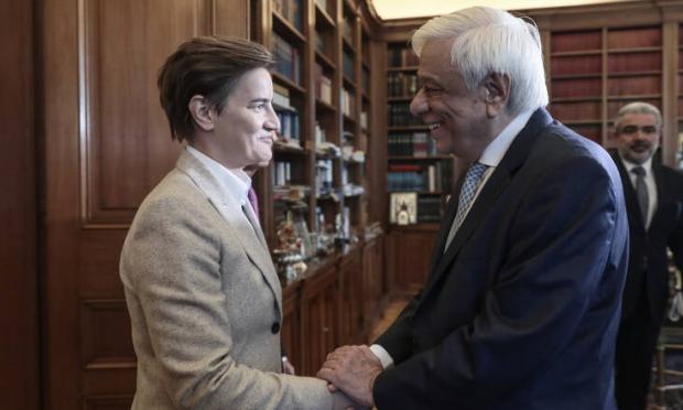 Τη σταθερότητα της ελληνοσερβικής φιλίας επισήμαναν ο πρόεδρος της Δημοκρατίας Προκόπης Παυλόπουλος και η πρωθυπουργός της Σερβίας Άνα Μπρνάμπιτς κατά τη διάρκεια της συνάντησής τους στο προεδρικό Μέγαρο στην Αθήνα.