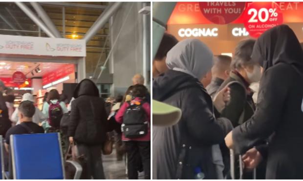 Ένα βίντεο εμφανίστηκε στη σελίδα του Instagram "Uncensored" που δείχνει ομάδες Τούρκων ανδρών και γυναικών με μαντήλα, οι οποίες ανέμεναν σε μεγάλες ουρές στο αεροδρόμιο της Ποντγκόριτσα.